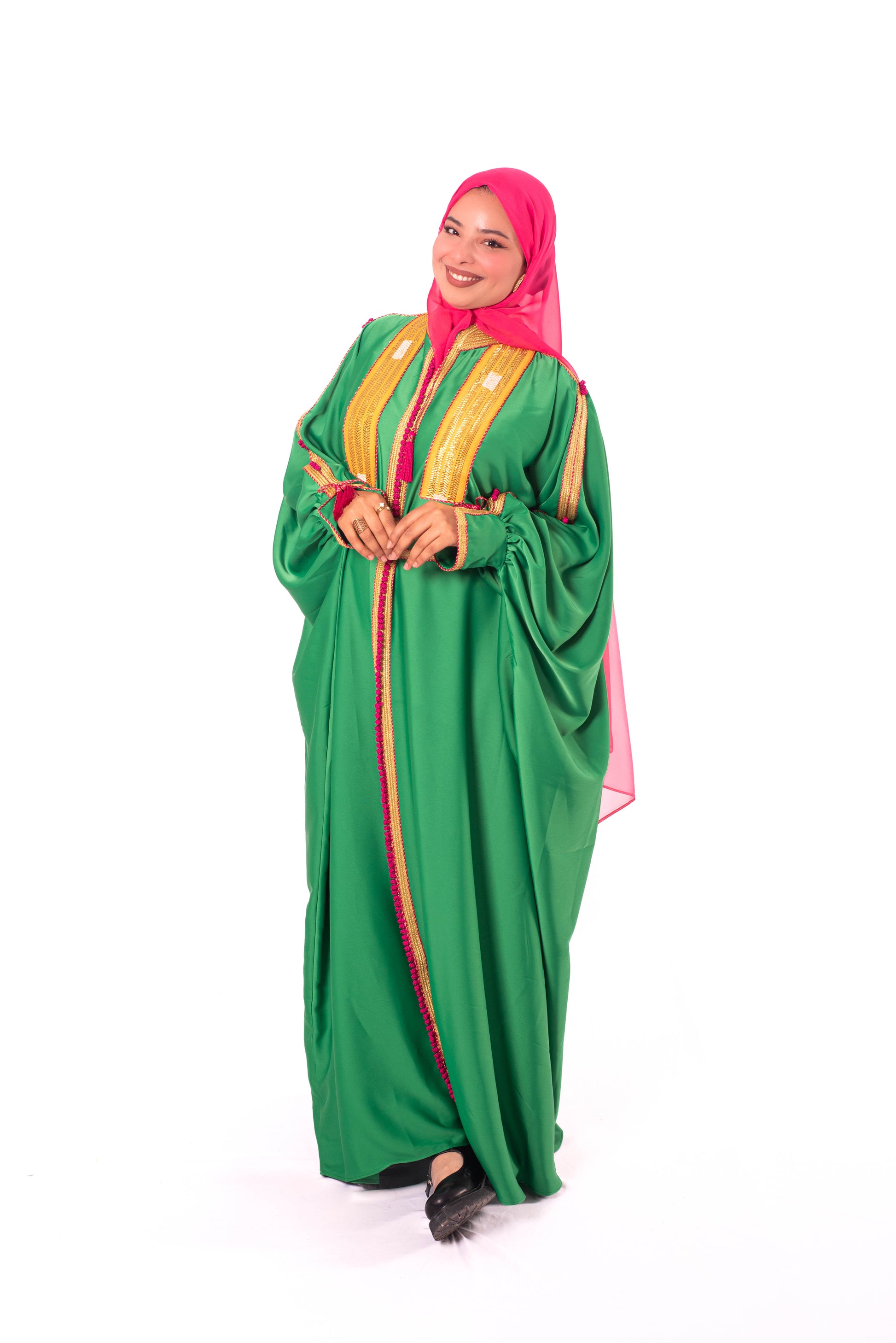 Showcase timeless elegance with this green Tunisian kaftan, crafted from rich satin fabric. Featuring intricate traditional embroidery and finished with luxurious handcrafted detailing, this piece reflects the beauty of North African craftsmanship. Perfect for weddings, cultural events, and special celebrations. Custom colors available.