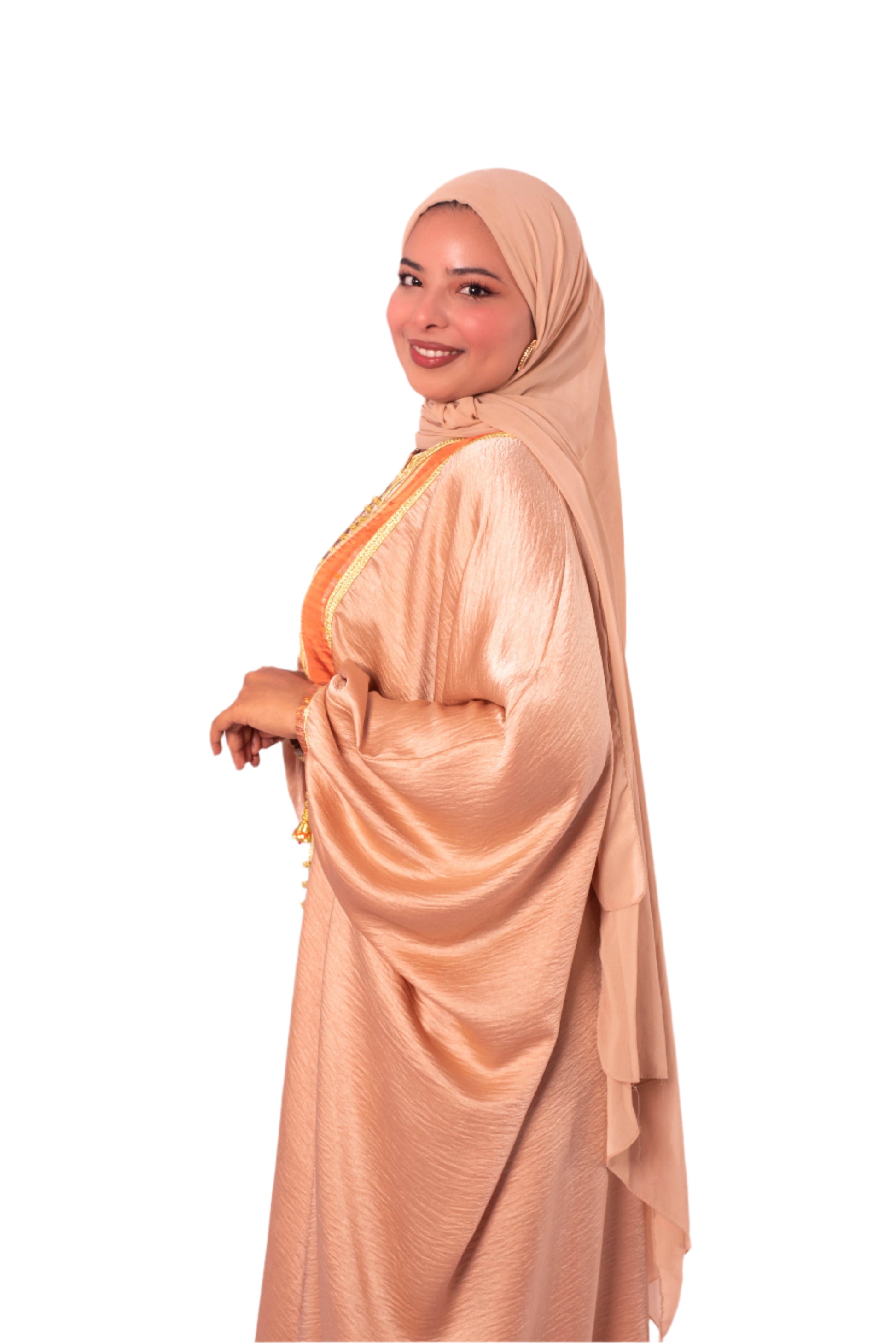 Celebrate Tunisian artistry with this elegant kaftan, crafted in luxurious satin fabric. The design features authentic traditional embroidery enriched with handcrafted detailing and signature knotwork. A timeless piece perfect for weddings, traditional ceremonies, or standout special occasions. Custom colors available.